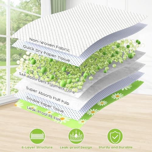 6-Layer Protection Design: Features a 6-layer construction with a 3D diamond quilted top for rapid absorption; super absorbent polymer core turns liquid into gel; leak-proof PE film prevents spills and leaks
