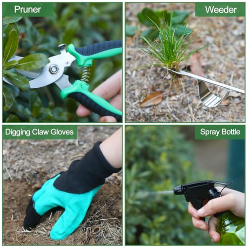 Specification: Garden Tool Set for Women, 12pcs Heavy Duty Gardening Tools, Cute Gardening Supplies Gifts for Women Mom, Garden Hand Tools with Fashion Organizer Handbag, Garden Tools for Gardening, Planting, Green