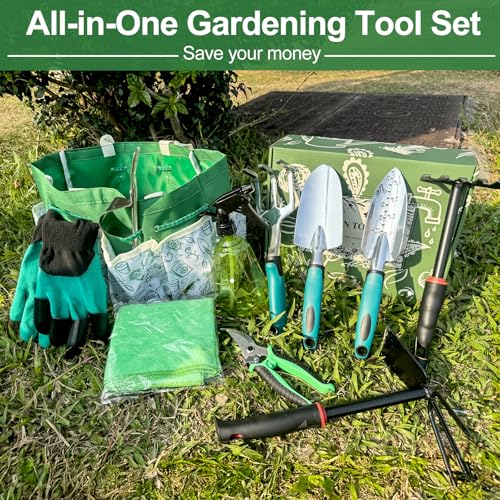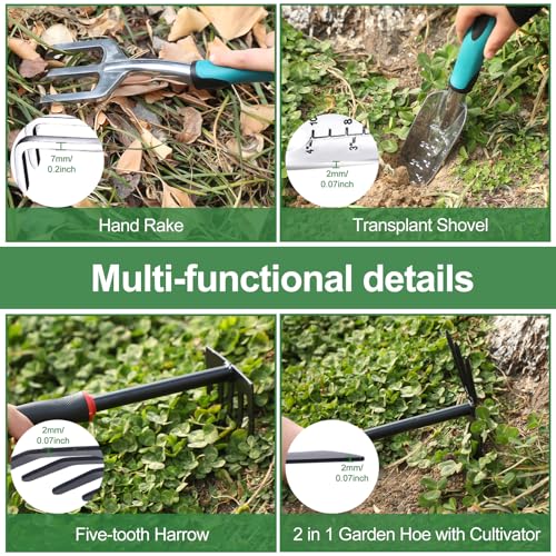 Sturdy & Durable: The all-in-one gardening tool set made of heavy duty high stiffness stainless steel & aluminum & Iron, strong and durable, hardly deformed, all the garden tool is carefully polished and has no sharp edges, the blade is treated with fine polishing technology, and the surface is glossy without losing its sharpness, Its high quality maintains its toughness for a long time and has a long service life