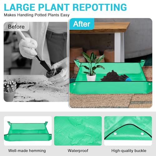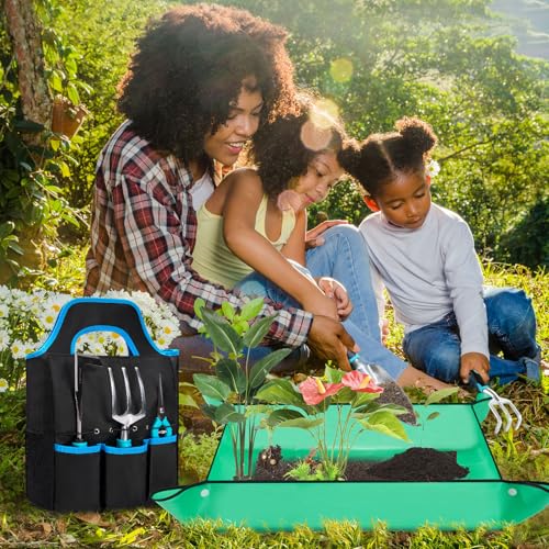 ENHANCED GARDENING EXPERIENCE – Large repotting mat inclueded in our yard tools kit simplifies indoor gardening. It eliminates the need to bend over, allowing for comfortable transplanting from a kitchen counter. The ergonomic handles, made from high-quality TRP, provide a comfortable grip for hands of all sizes, reducing strain and effort during use.Unleash your green thumb with our garden tools and create your dream garden