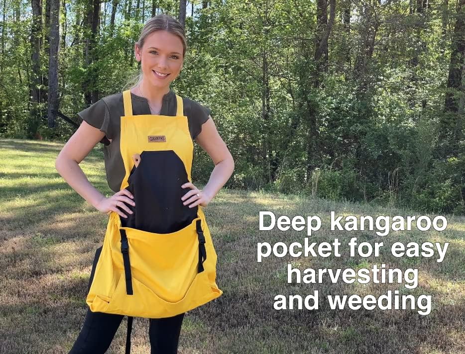 Grampa’s Garden Apron – Cross Back Gardening Apron With Pockets For Women & Men | Harvest Apron with Large Kangaroo Pouch
