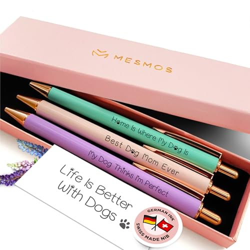 MESMOS 3-Pack Dog Mom Gifts, Fancy Pens for Women, Dog Lovers Gifts for Women and Owners, German-Made Ink Ballpoint Pens, Swiss-Made 1mm Medium Tip