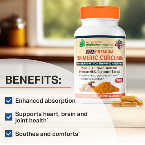 Premium American turmeric: Many turmeric pills contain turmeric powder from India and other countries, but American BioSciences’ turmeric supplement is made in the USA using turmeric grown in the USA and does not contain soy, gluten, milk, egg, wheat, peanuts, sweeteners, shellfish or added sugar; this formula has no color additives, binders or preservatives and is GMO-free